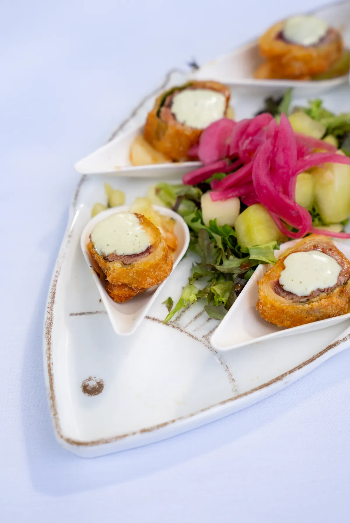 We’re best known for our coastal creations, like our signature sweet potato–crusted fish, but our menus go far beyond seafood. From BBQ feasts and chef-manned carving stations to vibrant vegetarian spreads and global flavors, every menu is custom-built to match your taste, style, and vision.